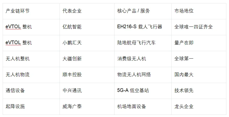 • 低空经济:亿航智能、顺丰控股(运营)、中兴通讯(设备)