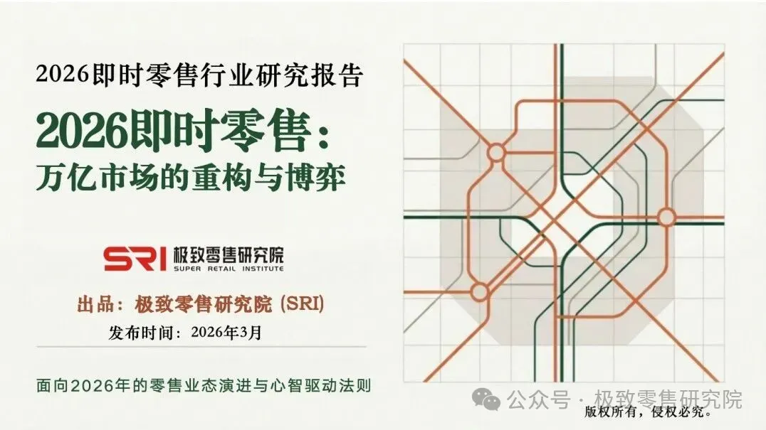 本文基于极致零售研究院(SRI)发布的《2026即时零售行业研究报告:万亿市场的重构与博弈》整理。报告全文包含平台战争、线下业态、品牌重构、供应链拆解、趋势展望等六大章节,欢迎联系获取。