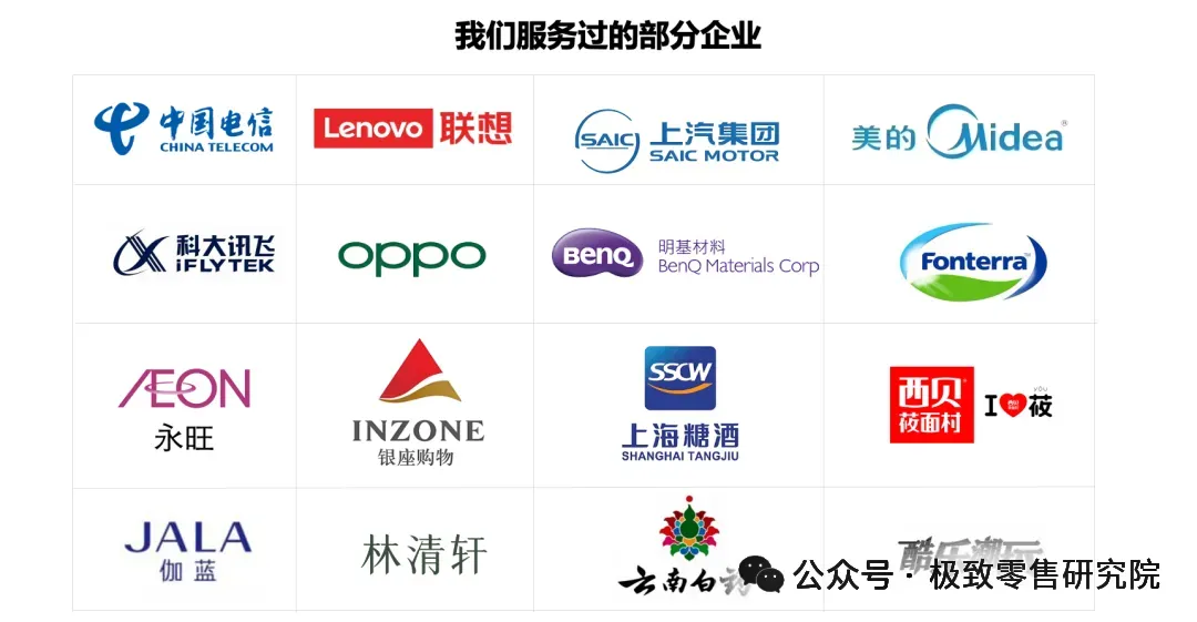 极致零售智库专家已为“联想集团、美的集团、上汽集团、明基集团、永旺集团、鲁商|银座集团、伽蓝集团”等数十家制造型企业、厂商、消费品、零售类企业提供DTC驱动增长的内训课程。