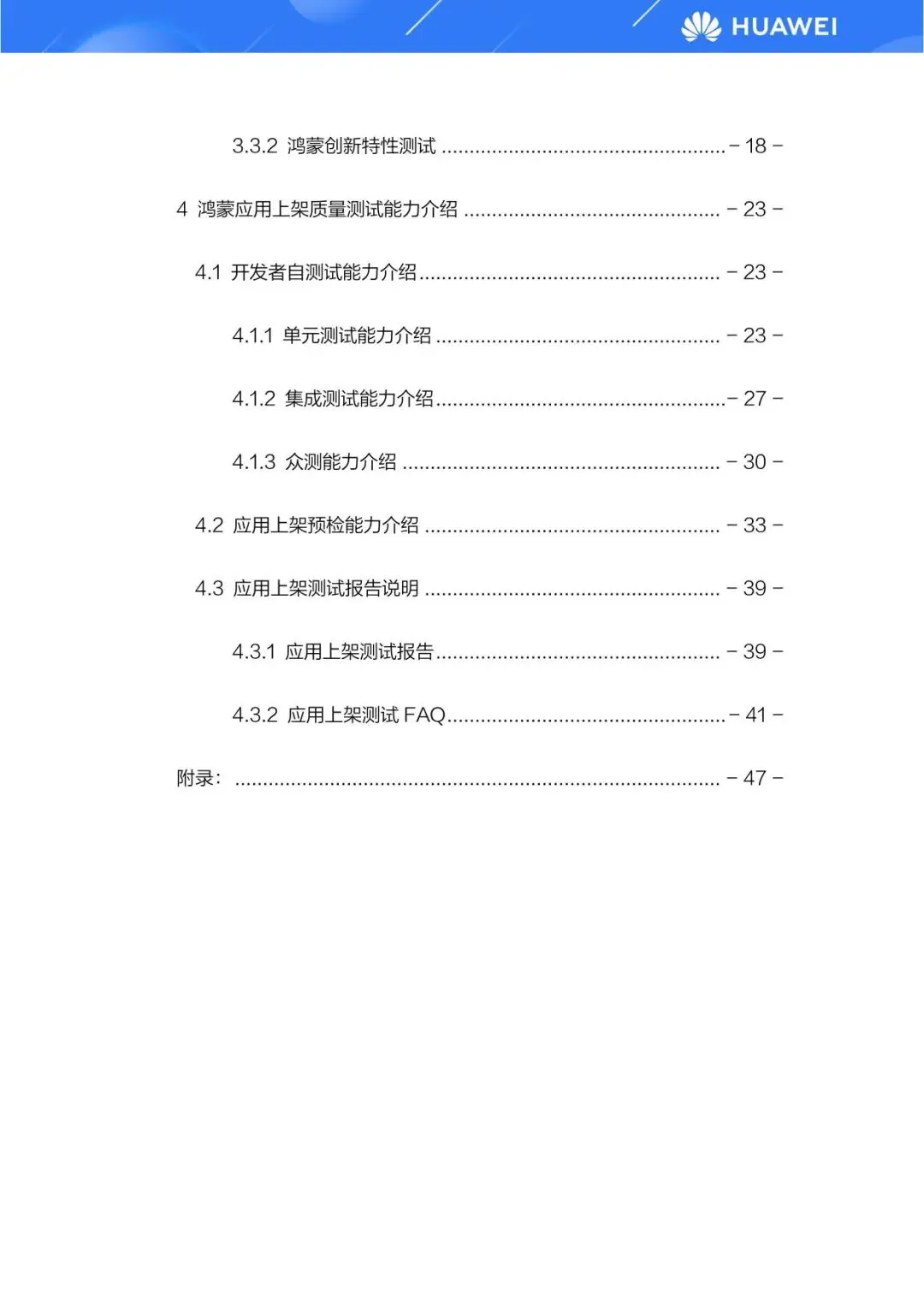 除了制定标准,白皮书还系统介绍了华为为开发者提供的全生命周期测试工程能力。这包括开发者自测试能力,如单元测试、集成测试和众测,帮助开发者在研发早期发现问题,降低后期修改成本。同时,华为提供了应用上架预检能力,开发者可在正式提交前自行检测应用是否符合关键质量要求。此外,白皮书还对应用上架测试报告进行了详细说明,并提供了常见问题解答,旨在降低开发者的理解与操作门槛,提升整体测试效率与应用质量。