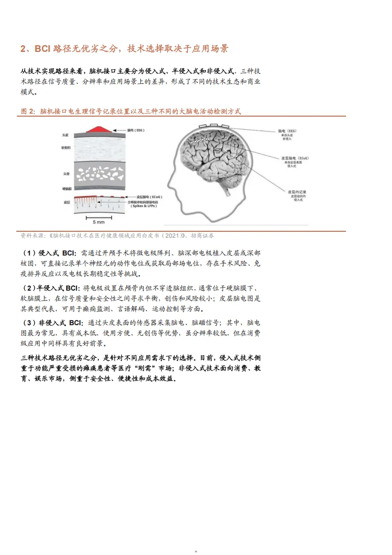 2026年脑机接口(BCI)技术已迈入产业爆发期,成为连接大脑与外部设备的核心通信技术,实现了脑信号的读取、调控与修复一体化发展。该技术按实现路径分为侵入式、半侵入式和非侵入式,无优劣之分,技术选择完全依托应用场景,侵入式聚焦医疗刚需,非侵入式则面向消费娱乐等大众市场,同时超声脑机接口、脑脊接口、深部电刺激等前沿技术持续突破,从动物实验逐步向人体临床验证推进。