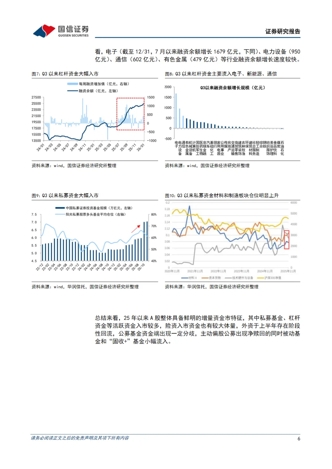 2025年A股增量资金主力来自活跃资金,包括杠杆资金、私募资金等。上半年市场震荡修复,政策支持和产业催化下各路资金“多点开花”。下半年市场放量拉升,主要增量资金来自私募和融资交易等活跃资金。行业层面看,上半年增量资金主要流入科技和红利板块,而Q3以来增量资金主要流入有色、电子和新能源板块。