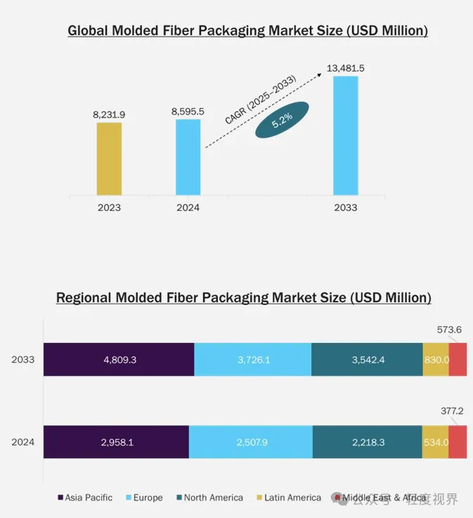 市场数据清晰地印证了这一趋势。根据Grand View Research的最新行业报告,2024年全球模塑纤维包装市场规模已攀升至86亿美元。更令人瞩目的是,预计到2033年,这一数字将突破135亿美元,期间年均复合增长率(CAGR)将达到5.2%。这股强劲的增长动力,远非单一的环保风潮所能概括,而是源于政策法规的强力驱动、消费者绿色意识的觉醒以及生产技术的持续革新,三者共同奏响了一曲产业腾飞的协奏曲。