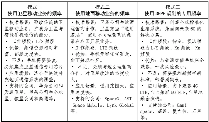 手机直连卫星的三种使用模式见下表。