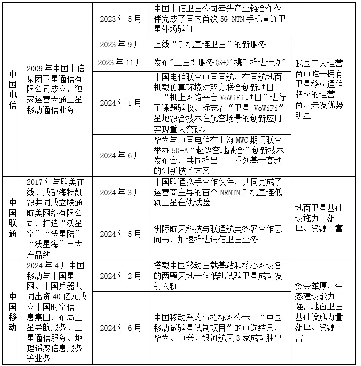 我国终端厂商、电信运营商在手机直连卫星服务的布局情况。