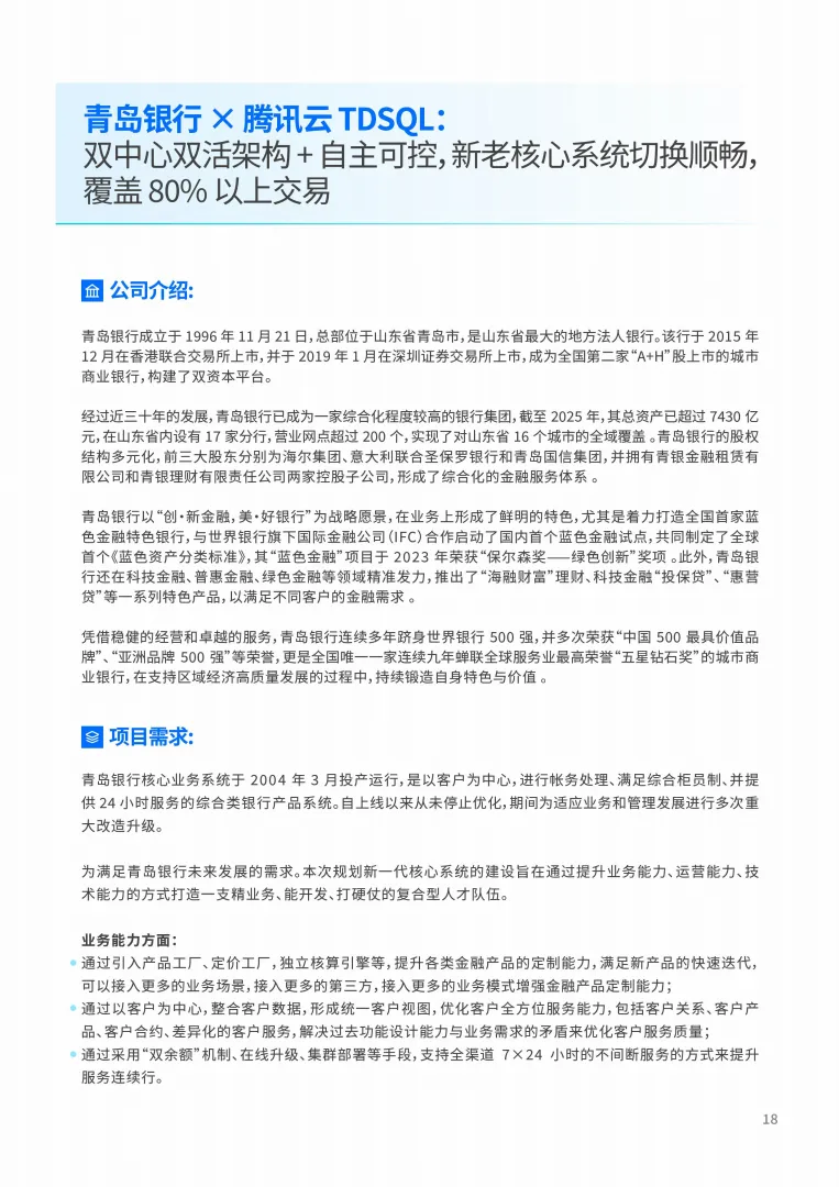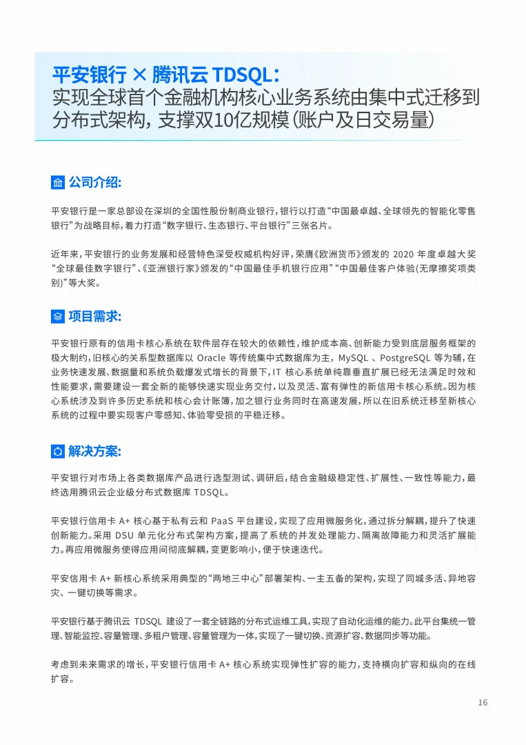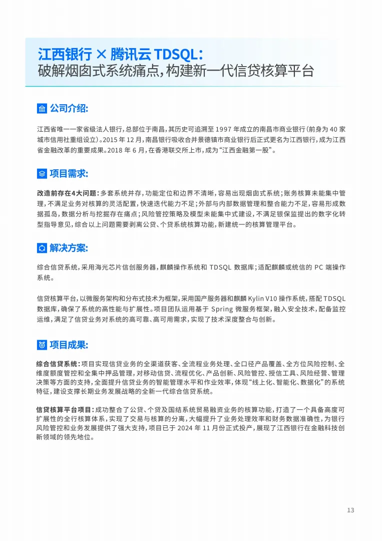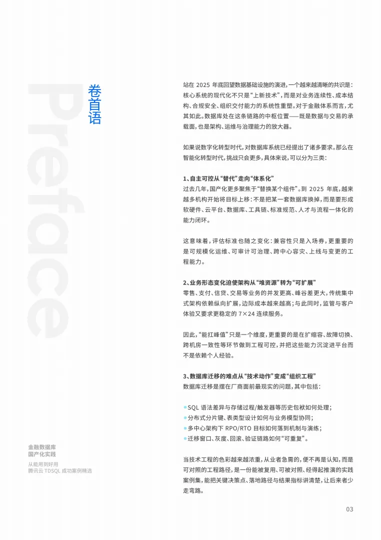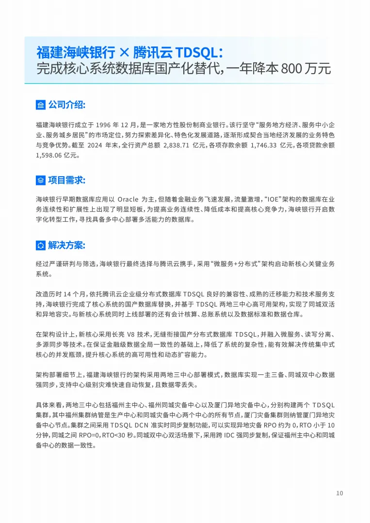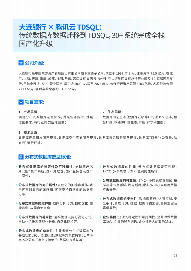 这份《金融数据库国产化实践:从能用到好用,腾讯云 TDSQL 成功案例精选》白皮书,系统地展示了腾讯云 TDSQL 在金融行业中的广泛应用和深度落地。以下是白皮书的核心内容总结,涵盖背景、需求、解决方案与典型案例:
