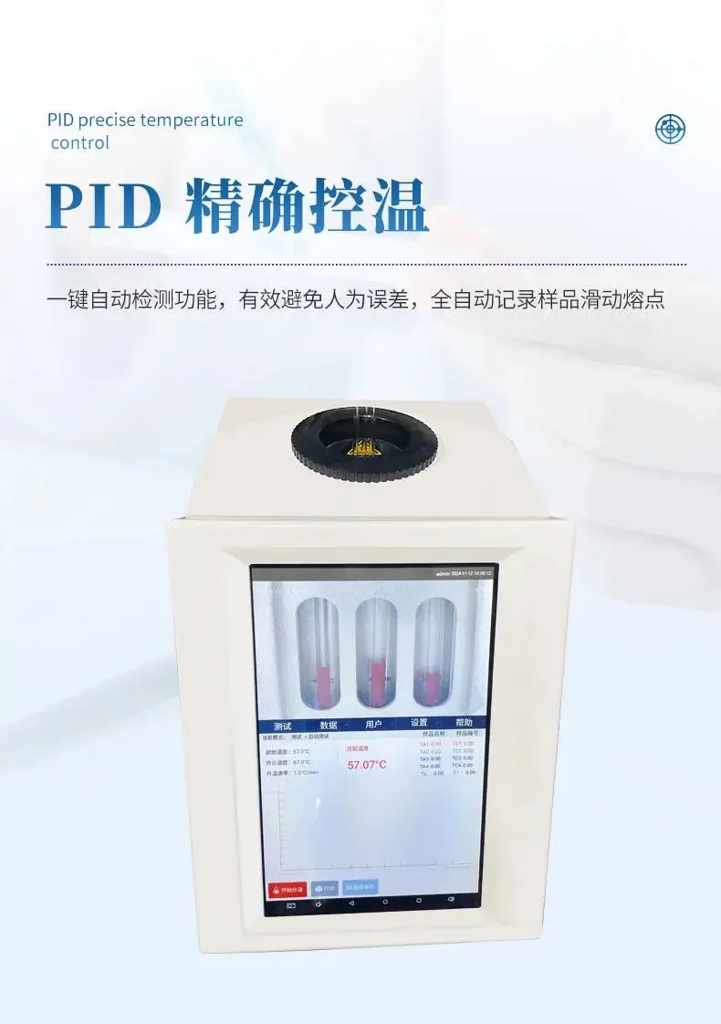 样品制备:将油脂样品吸入毛细管,两端开口,静置固化。 装样:将毛细管插入样品孔,确保垂直。 启动检测:设置升温速率,开始加热。 观察记录:样品开始滑动或熔化时记录初熔与终熔温度。 数据保存:自动生成图谱与视频,支持回放与导出。