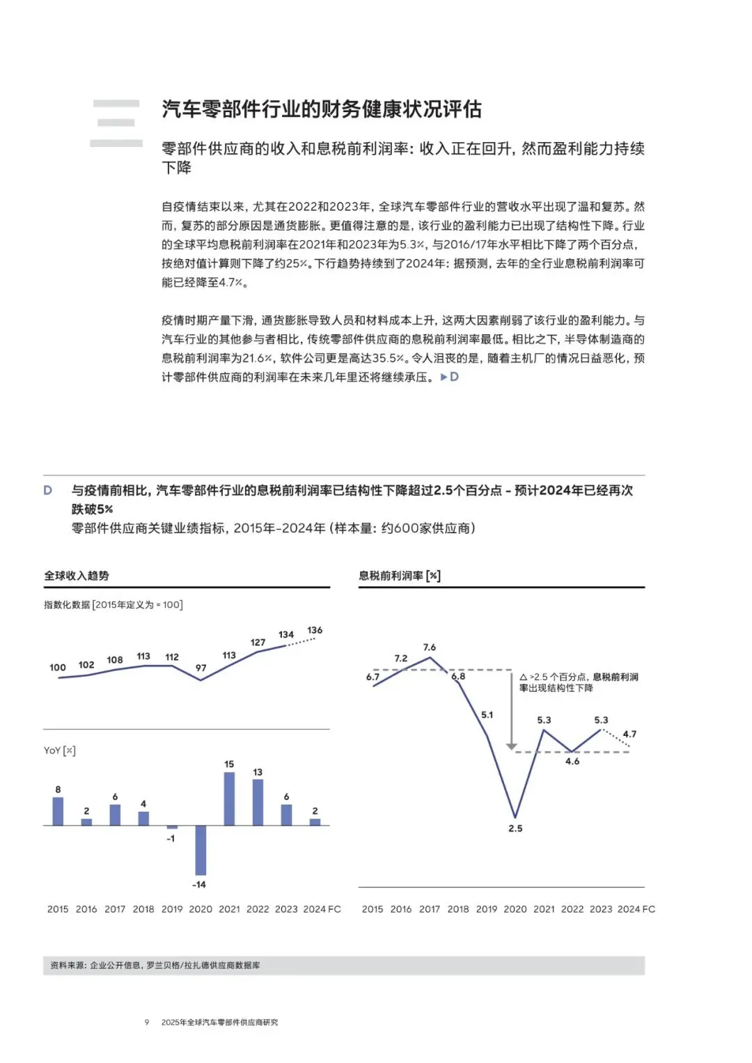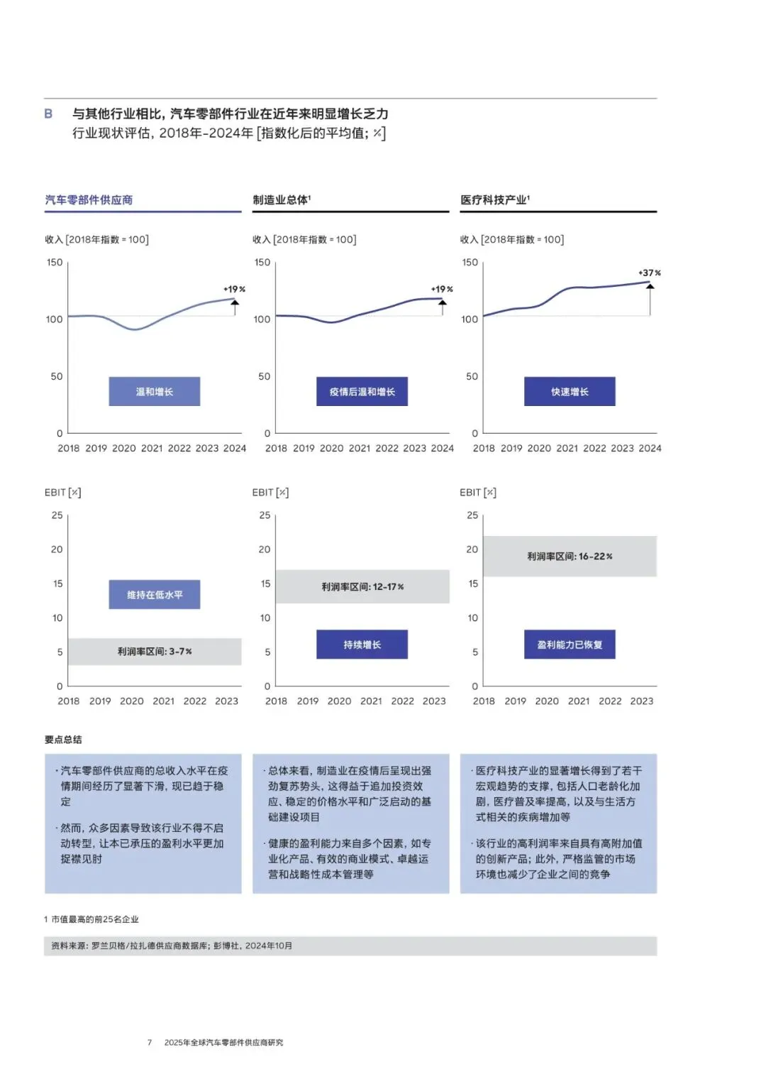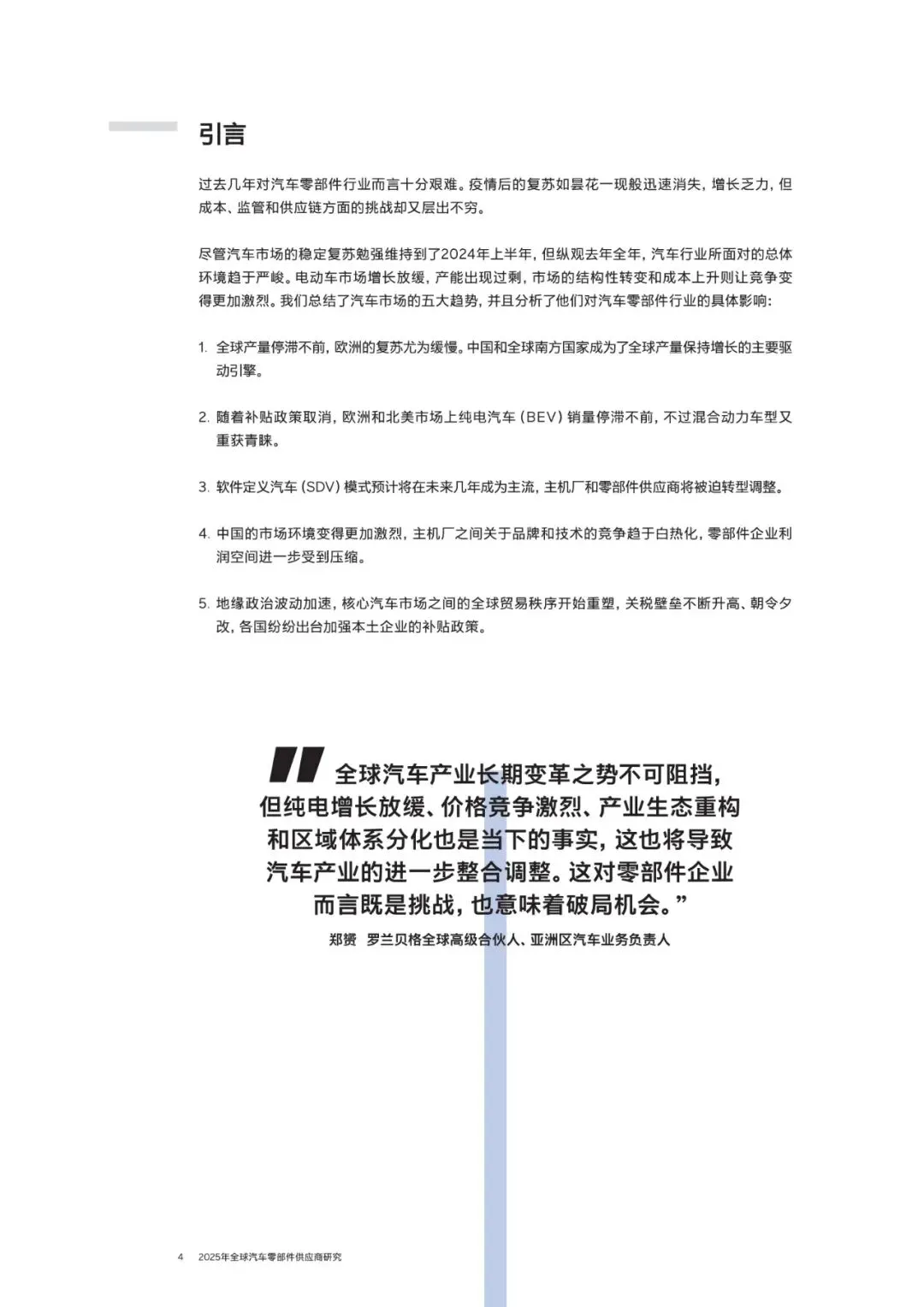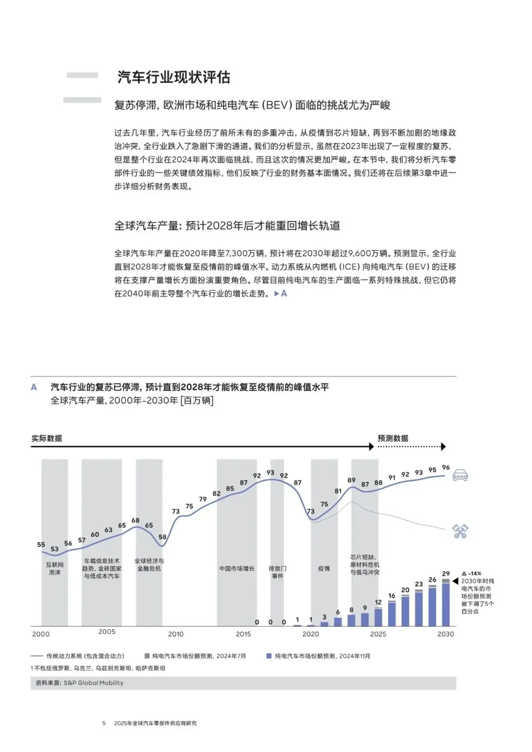 当前,全球汽车零部件行业正面临严峻的市场格局。增长停滞,竞争加剧,地缘政治高度不确定性,技术转型所需时间不断拉长进而导致成本压力陡增。基于对汽车零部件行业的长期观察,我们认为该行业现状可以被称为“Stagformation(停滞转型期)”,其有两大显著特征:销量增长停滞及现有商业模式亟待转型。