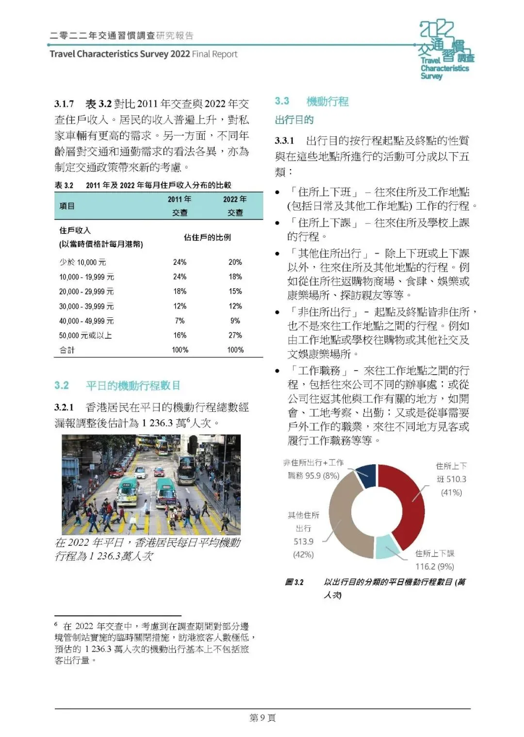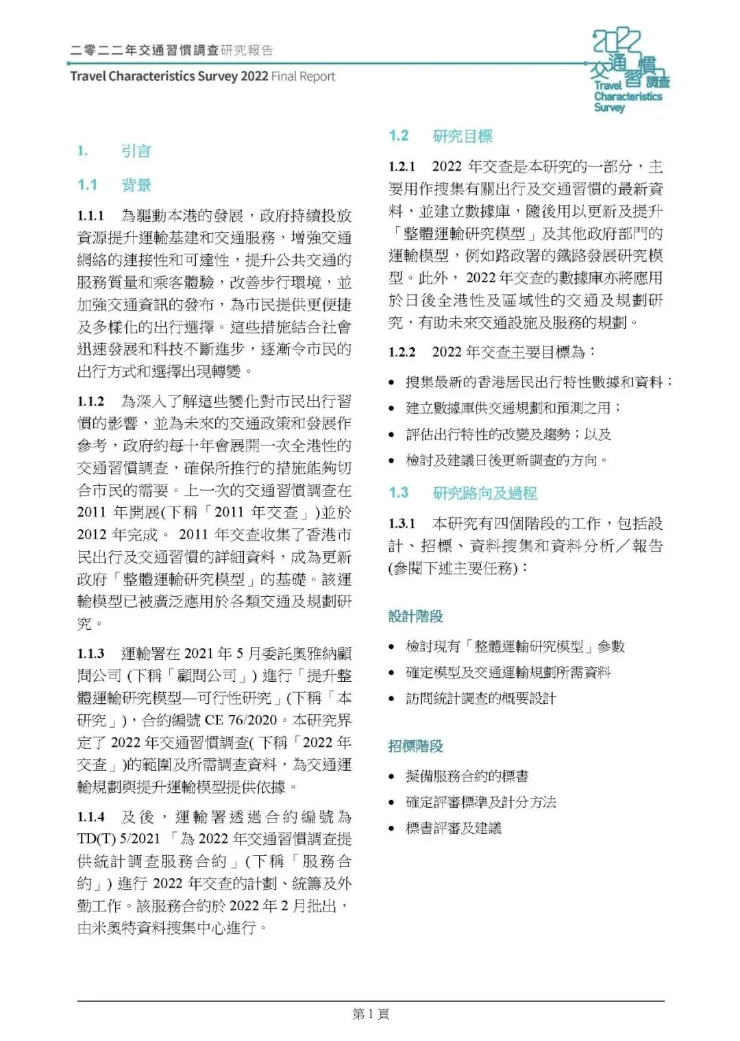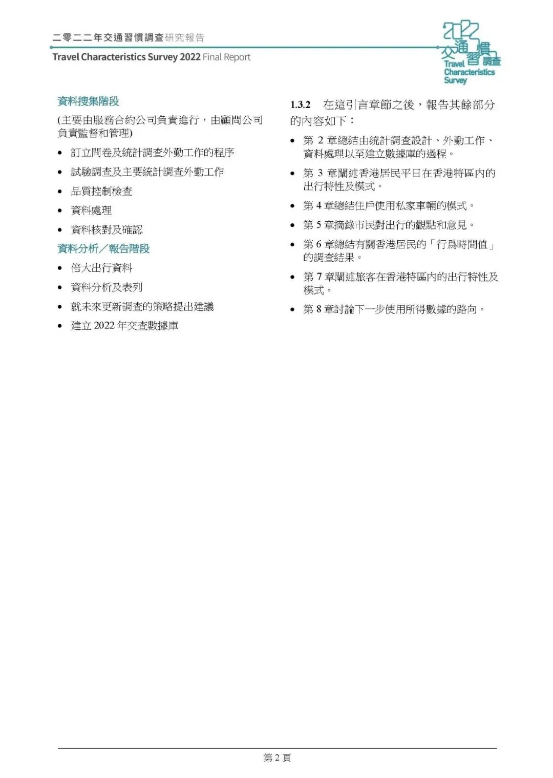 这份由 ARUP 编制的《2022 年香港交通习惯调查研究报告(2025 年版本)》,是继 2011 年后香港又一次全港性交通习惯调查,调查分 2022 年 9 月 - 2023 年 1 月的住戶及交通选择取向调查、2023 年 6-9 月的旅客调查两个阶段开展,通过住戶访问、交通选择取向、旅客统计三类调查,结合数据倍大与校正,分析了香港居民及访港旅客的出行特征、私家车辆使用情况、市民出行相关意见等,为香港交通规划和运输模型更新提供核心数据支撑,核心总结如下: