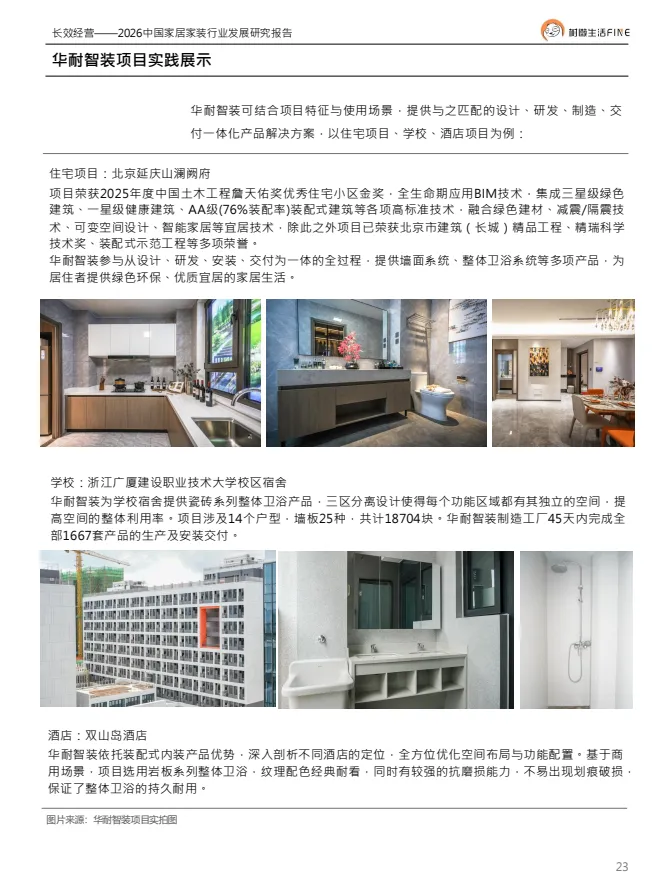 《报告》强调,2026-2028年是家居建材企业构建技术壁垒、打造新护城河的“关键三年”。华耐智装深耕工业化内装领域多年,以技术创新破解行业痛点,形成了涵盖核心部品、施工工艺、全流程管控的全链条技术体系。