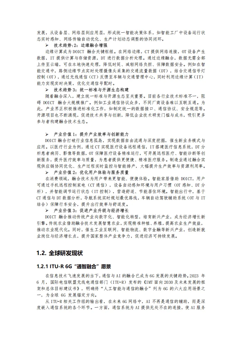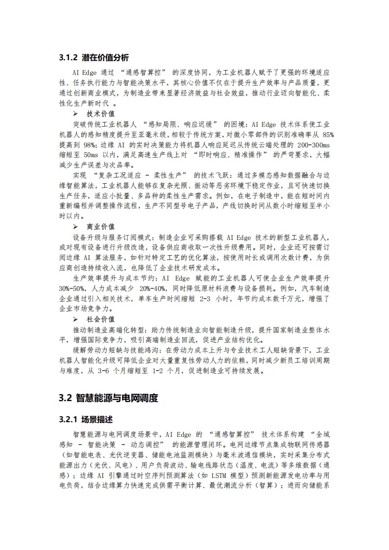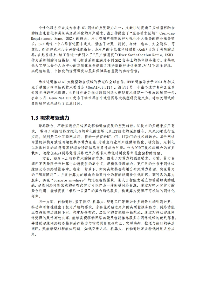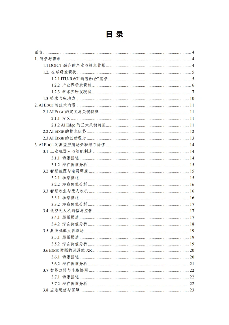 白皮书由AI Edge联盟发布,立足DOICT深度融合的产业技术背景与6G通智融合的发展趋势,系统阐释了AI Edge的技术内涵、应用价值与核心技术方向,为边缘智能与通信网络融合发展提供了全面框架。AI Edge作为面向智能应用的综合移动信息服务基础设施,基于开放性可编程统一算力架构,实现移动边缘信息服务、网络功能虚拟化、网络内生AI与自治三大核心功能,具备共享化、可扩展、层级化关键特征,能实现DOICT能力互通与算力资源共享,推动网络服务从被动响应向主动预测转变,构建泛在智能服务新范式。