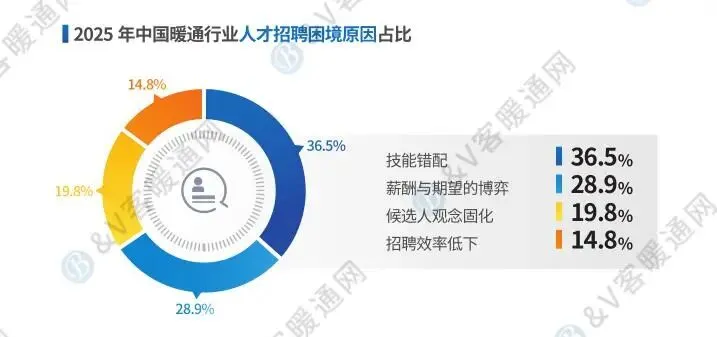 总体来看,2025年暖通空调行业的人才市场,是行业转型期的真实缩影。双向谨慎的格局、供需错配的矛盾、人才结构的重构,相互交织、相互影响,既展现出行业内卷下的生存压力,也折射出行业变革中的发展机遇。不同板块的人才生态差异,不同技能人才的发展境遇,背后是行业发展逻辑的深刻转变,而这场围绕人才的迭代与重构,仍在持续影响着行业的未来走向。