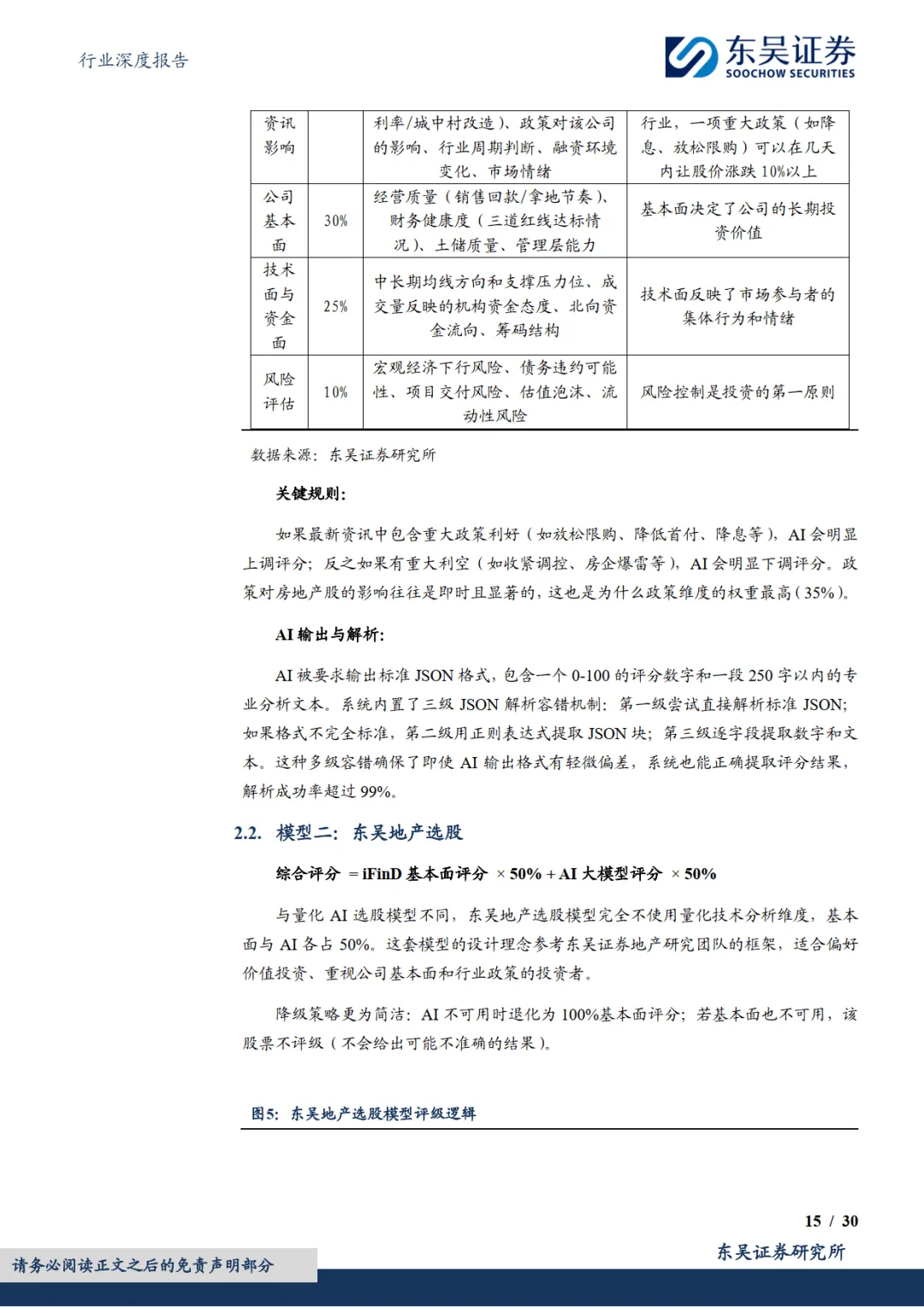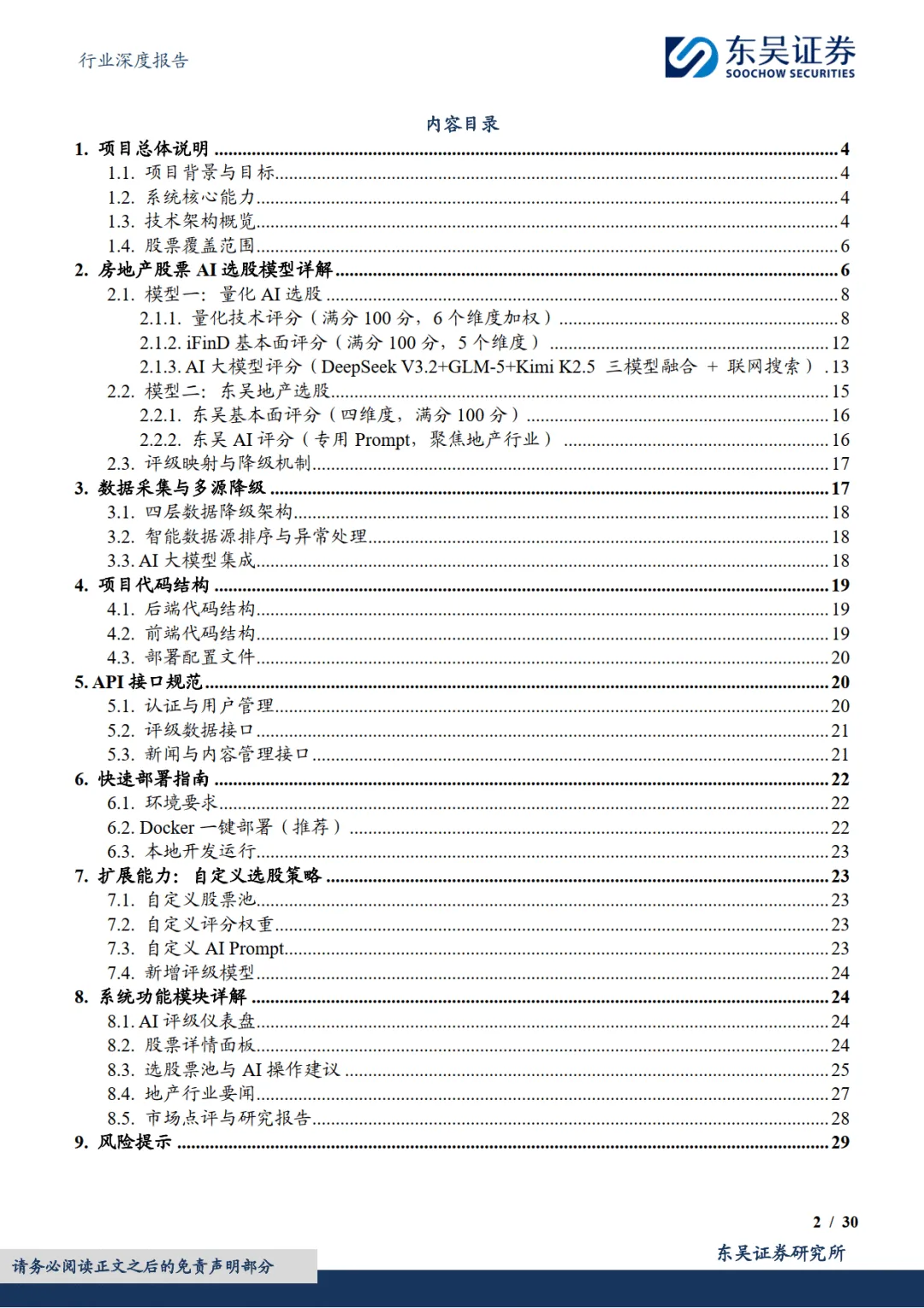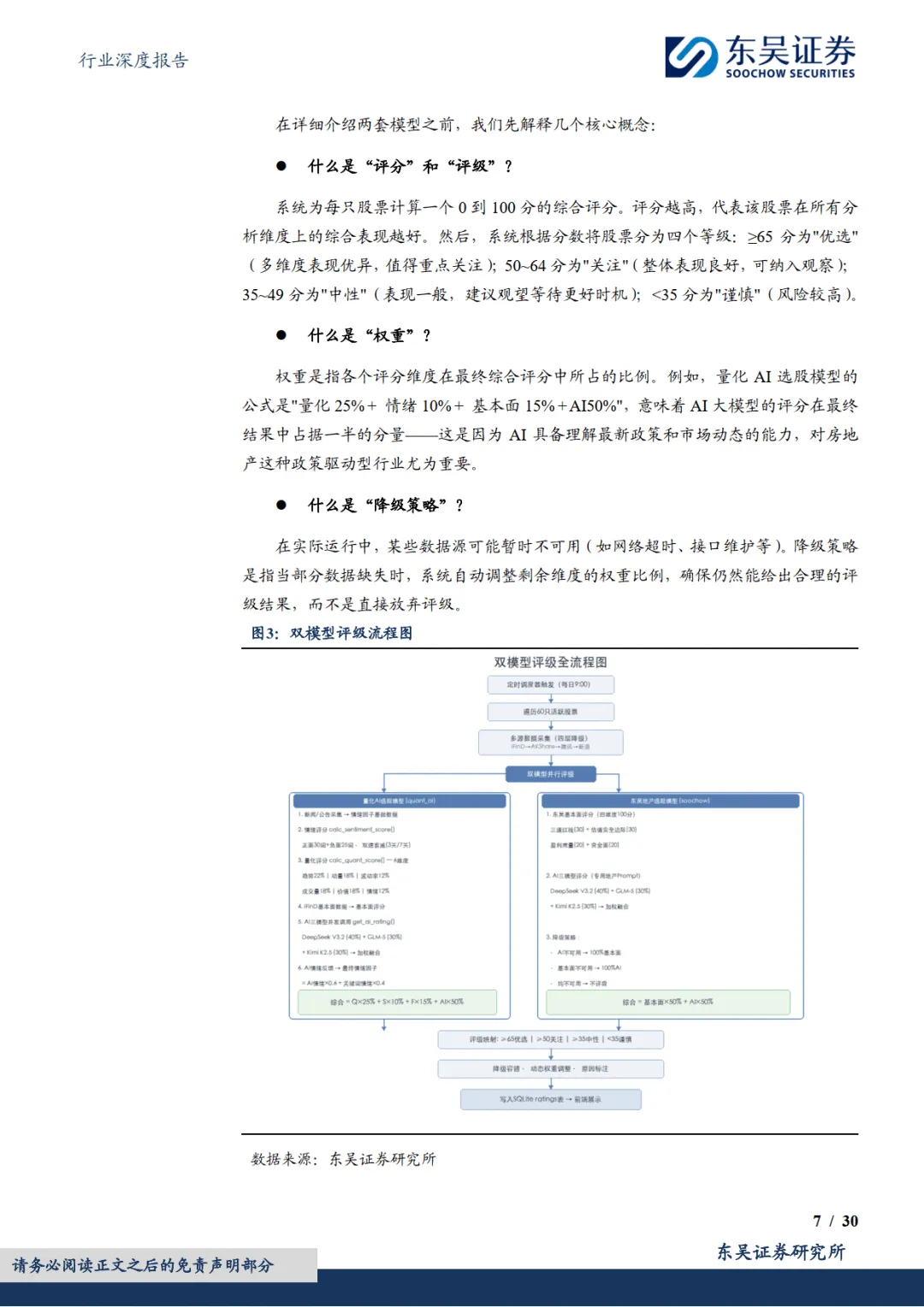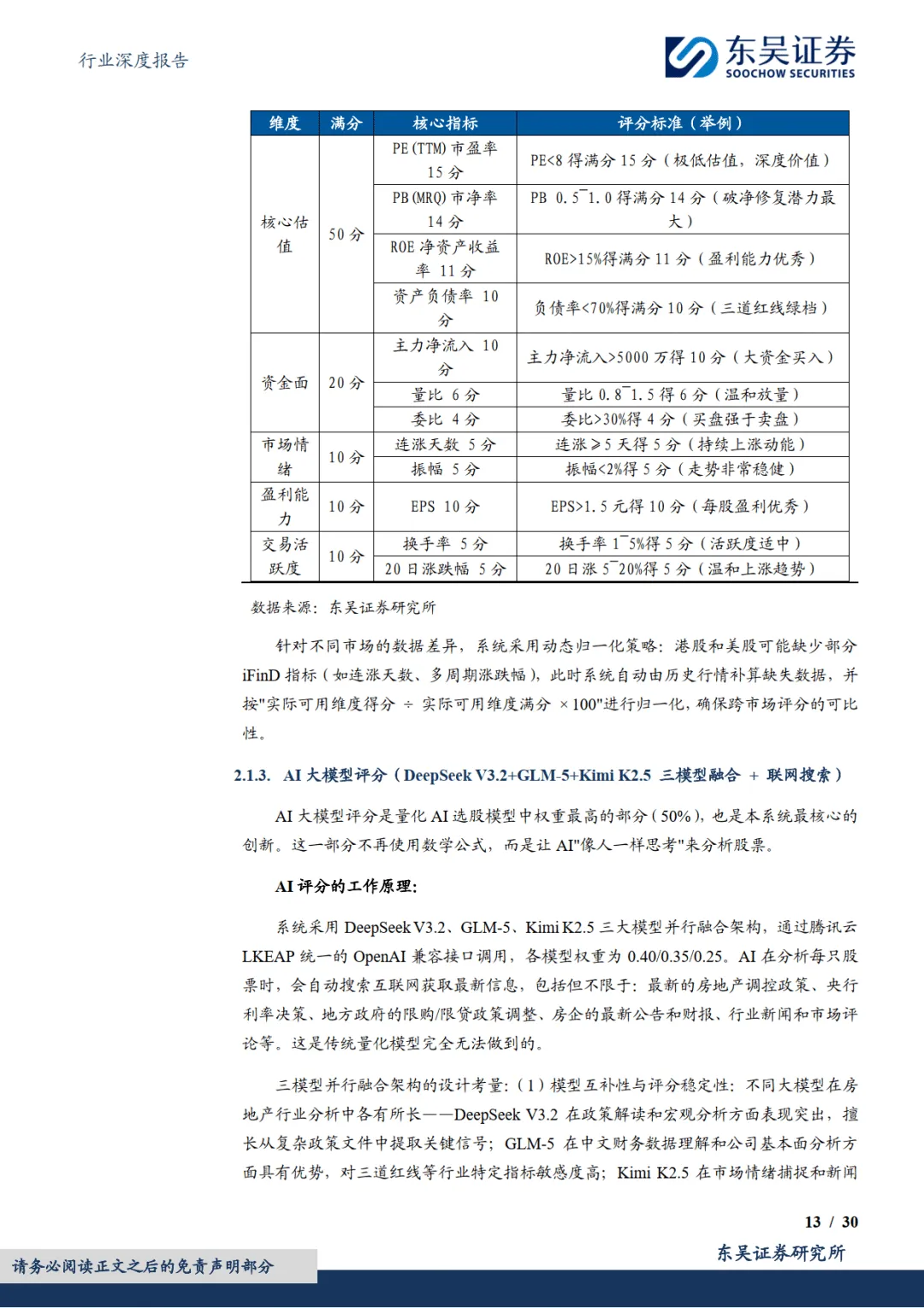 2026 年 3 月东吴证券发布房地产行业深度报告,推出业内首个融合大语言模型的房地产股票 AI 选股系统,维持行业增持评级。该系统打造双模型架构,覆盖 A、港、美三大市场 61 只地产相关股票,通过量化分析、大模型技术与多源数据融合,解决传统地产选股信息繁杂、政策响应滞后等痛点,同时支持自定义策略与跨行业迁移,为不同风格投资者提供高效评级服务。————