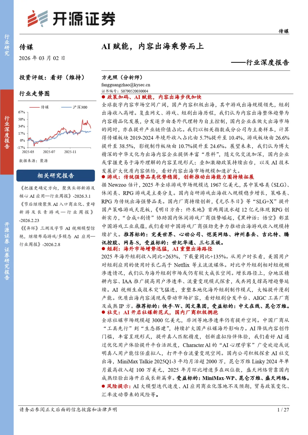 传媒行业深度报告:AI赋能,内容出海乘势而上-开源证券