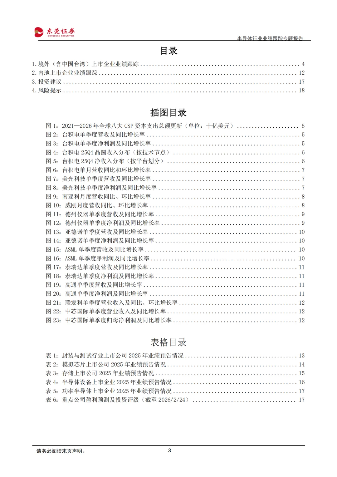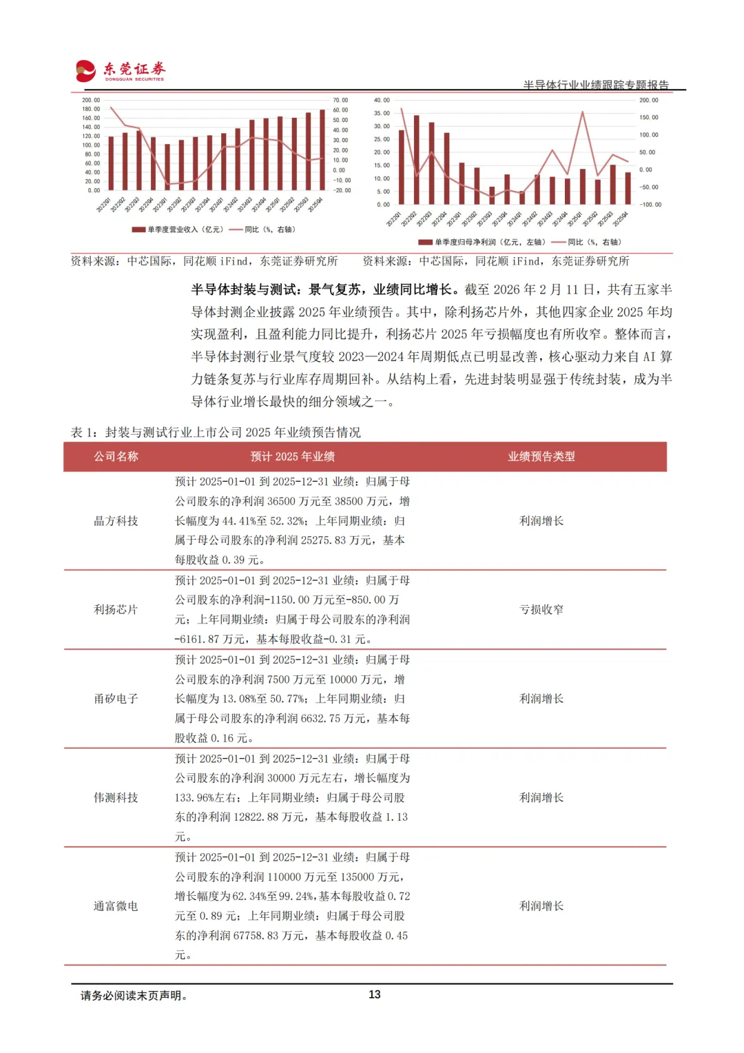 2)半导体封装与测试:景气复苏,业绩同比增长。从已披露业绩预告的上市企业来看,半导体封测行业景气度较2023—2024年周期低点已明显改善,核心驱动力来自AI算力链条复苏与行业库存周期回补。从结构上看,先进封装明显强于传统封装,成为半导体行业增长最快的细分领域之一。