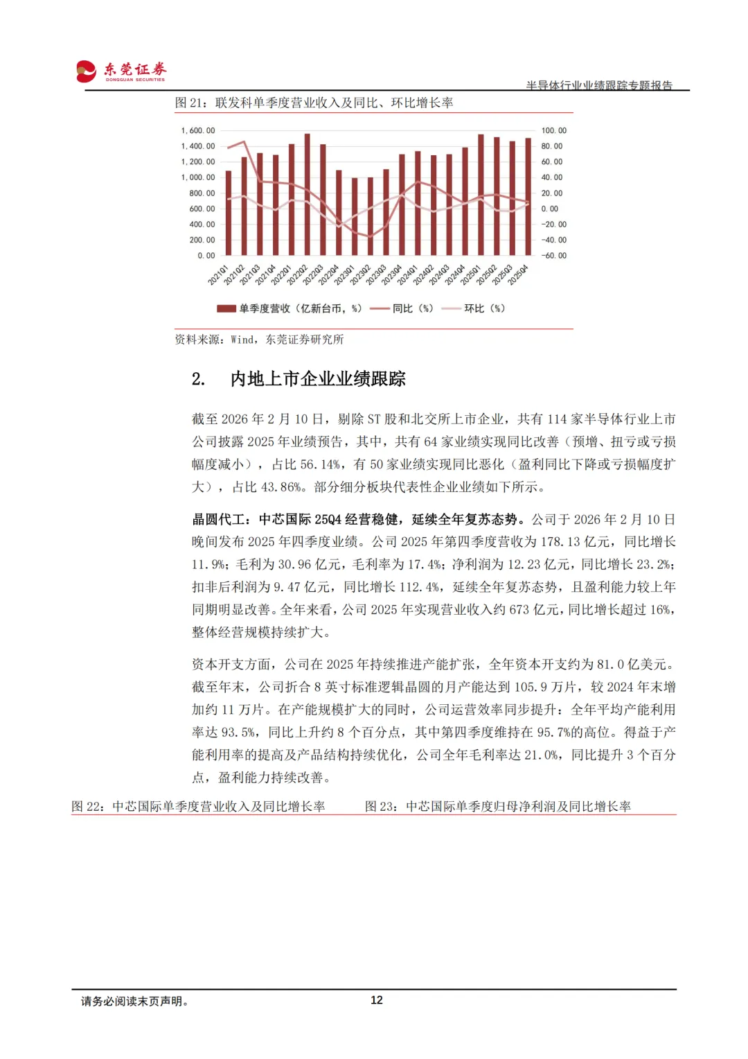 1)晶圆代工:中芯国际25Q4经营稳健,延续全年复苏态势。中芯国际25Q4营收、净利润均实现同比增长,资本开支与产能规模持续扩大,运营效率同步提升;