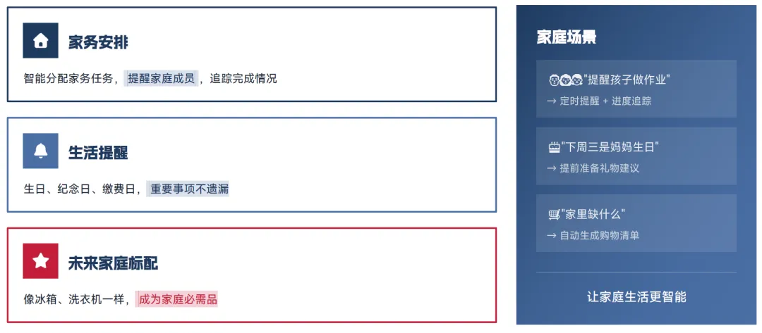 2027 年为家庭化之年,AI 助手将进入普通家庭,随着产品价格下降、易用性持续提升,大众接受度全面提高,覆盖生活、学习、养老等更多家庭场景;