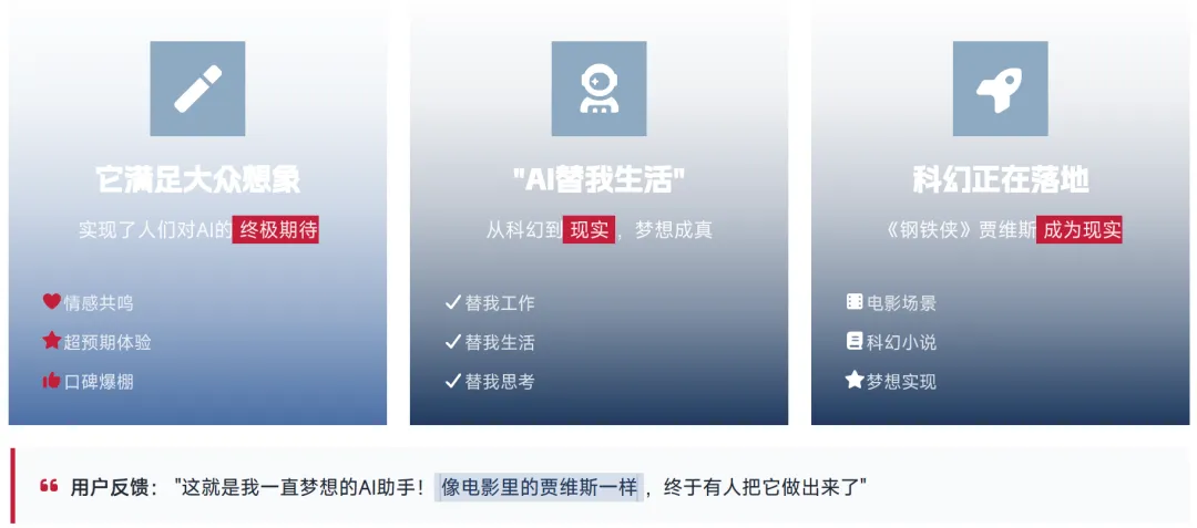 OpenClaw 实现了人们对 AI 的终极期待,让 "AI 替我生活" 从科幻照进现实,形成了极强的情感共鸣与超预期用户体验。大量用户反馈表示,"这就是我一直梦想的 AI 助手!像电影里的贾维斯一样,终于有人把它做出来了",这种对科幻场景的落地实现,让产品形成了极强的口碑效应,推动了用户规模的快速扩张。
