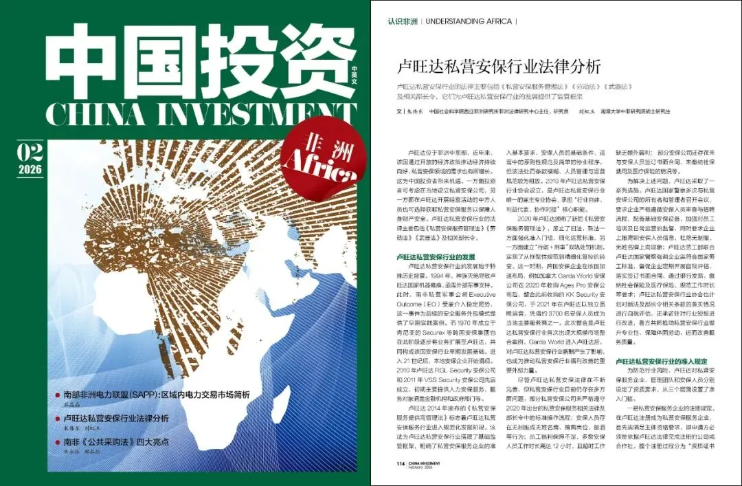 卢旺达近年经济保持增长态势,2024年经济增速达8.9%;据卢旺达发展委员会发布的2024年度报告显示,中国已成为卢旺达外国投资的核心来源地。在此背景下,中卢合作的深度与广度持续拓展,中方在卢旺达的人员活动、资产规模也有所扩大,既推动私营安保服务需求增加,也让赴卢设立私营安保公司的现实可行性进一步提高。