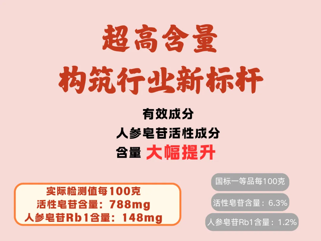 核心成分安心:核心皂苷含量稳定在7.88%以上,并富含多糖及47种挥发油类物质,成分全面。