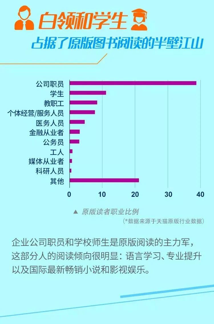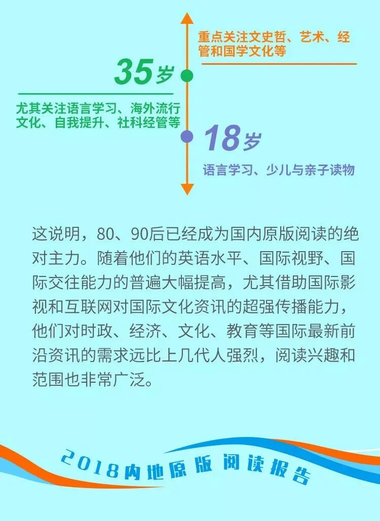 今天这份报告数据来自中华商务贸易公司,作为全国最重要的港台及国际原版图书供应机构,以及天猫、京东、当当等各大电商平台原版图书供应的领军者——中华商务贸易公司发布了最新的2018内地原版阅读报告。原版图书读者群年龄段、城市、消费能力、职业等群体画像?哪类原版书最受欢迎?以及国外外版书主要输出方排名?