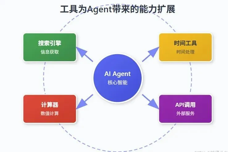 AI Agent = LLM(大脑)+ 规划技能 + 记忆 + 工具使用其中LLM扮演Agent的"大脑",提供推理、规划等能力;而Agent则是大模型的"手脚"和"工具集",赋予大模型感知环境和执行动作的能力。