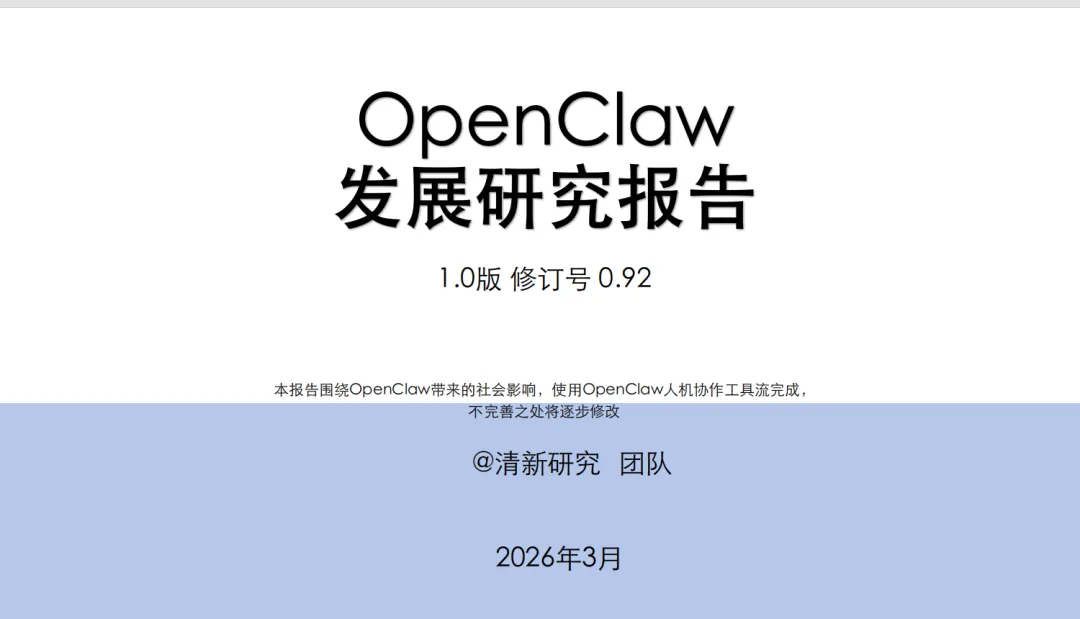重磅!全网首发OpenClaw发展研究报告 ||《OpenClaw发展研究报告1.0》和《OpenClaw自我1.0》