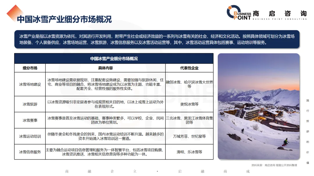 中国冰雪产业细分市场概况