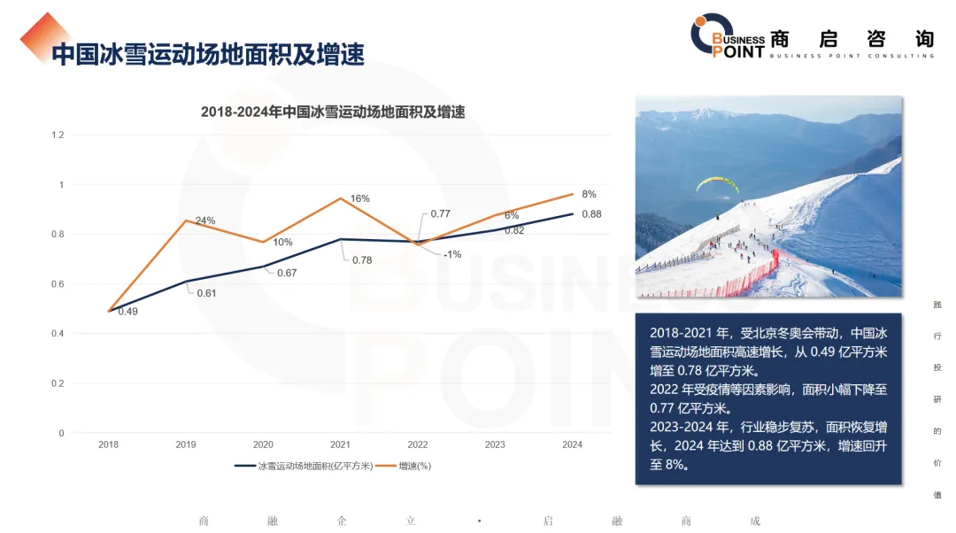 中国冰雪运动场地面积及增速