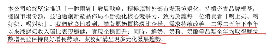 鲜奶、奶粉、奶酪全年双位数增长,并保持良好增长势头。