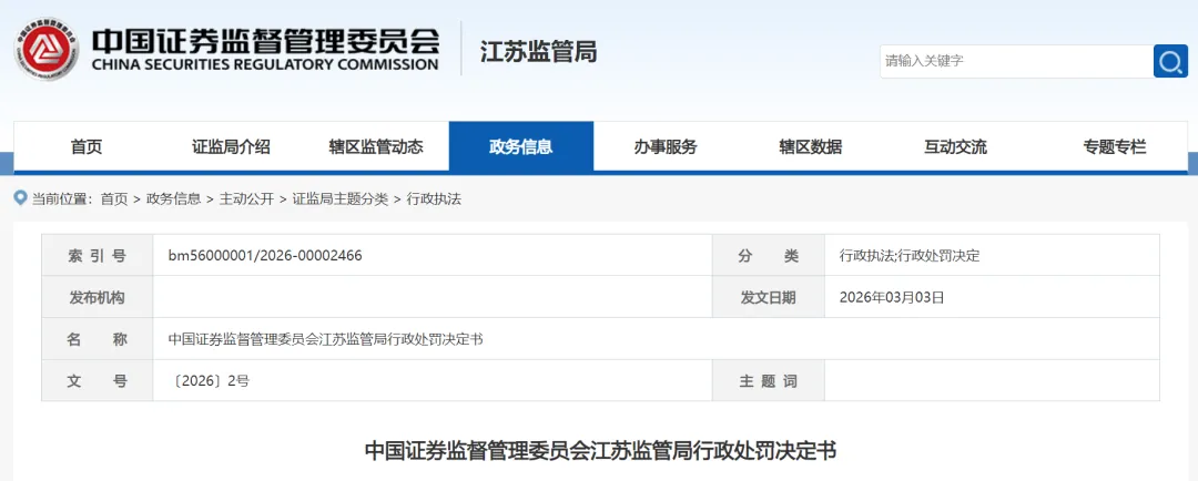 2026年3月3日,江苏证监局对江苏亚特尔地源科技股份有限公司及相关责任人作出行政处罚,原因为其未按期披露2024年年度报告。经查明,该公司因与2024年度审计机构北京中名国成会计师事务所就审计意见类型未达成一致,拒绝接受其拟出具的审计报告,导致公司无法在法定期限内披露2024年年度报告。公司股票自2025年5月6日起停牌。此后,该公司虽改聘四川华信(集团)会计师事务所,但该所因工作量预估误差无法按期完成审计,终止业务。截至2025年12月22日公司股票终止挂牌,公司仍未披露2024年年度报告。上述行为违反《证券法》相关规定,构成未按期披露定期报告的违法行为。公司时任董事长、总经理顾健在知悉违法事项后未提出异议、怠于履行职责;信息披露事务负责人徐卫东未及时编制年报草案并提请董事会审议,二人是直接负责的主管人员。江苏证监局决定:对公司给予警告,并处以八十万元罚款;对徐卫东(时任董事、信息披露事务负责人)给予警告,并处以四十万元罚款;对顾健(时任董事长、总经理)给予警告,并处以三十万元罚款。《中国证券监督管理委员会江苏监管局行政处罚决定书》原文如下: