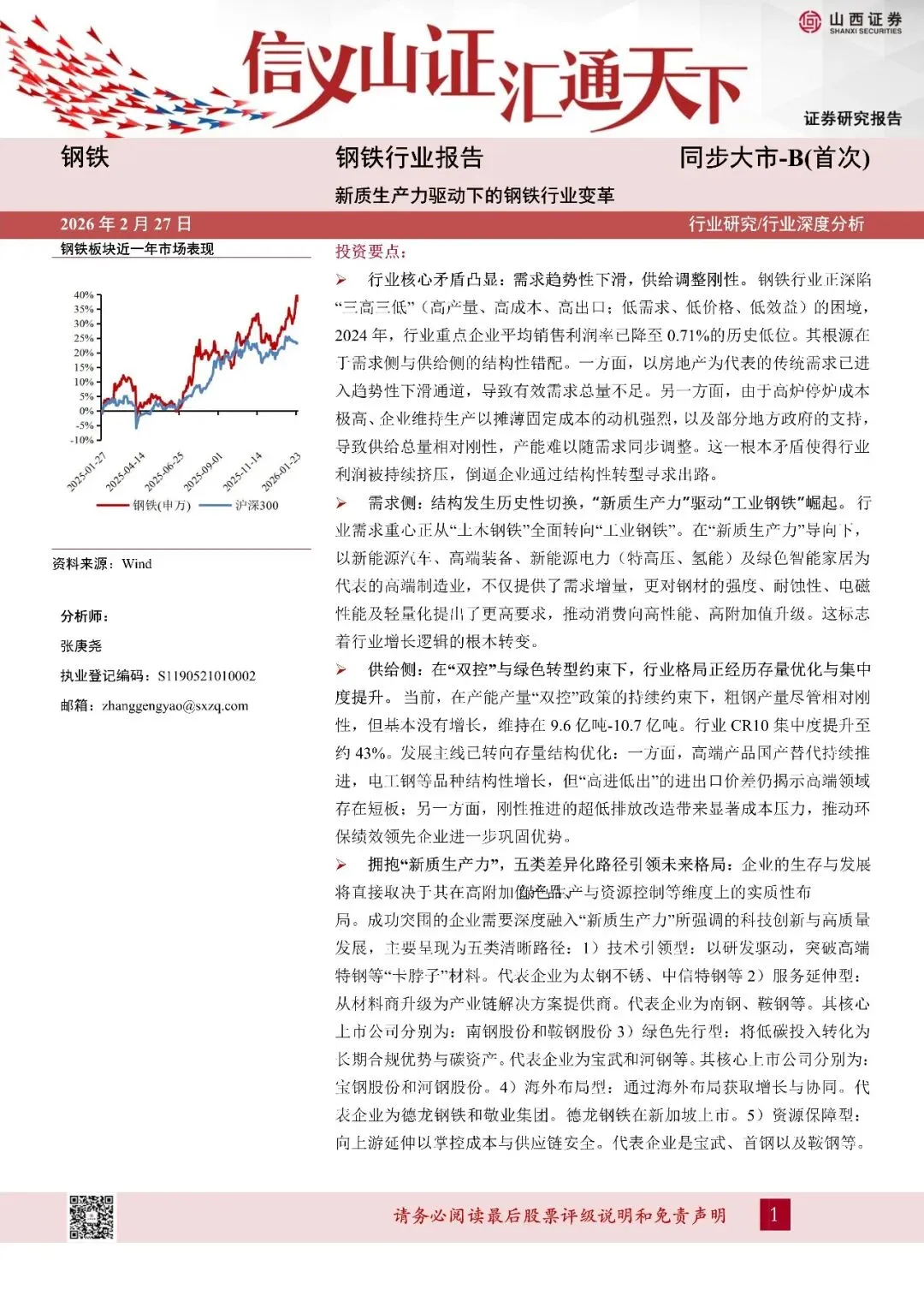 回复暗号:钢铁行业报告:新质生产力驱动下的钢铁行业变革-260227-山西证券-32页