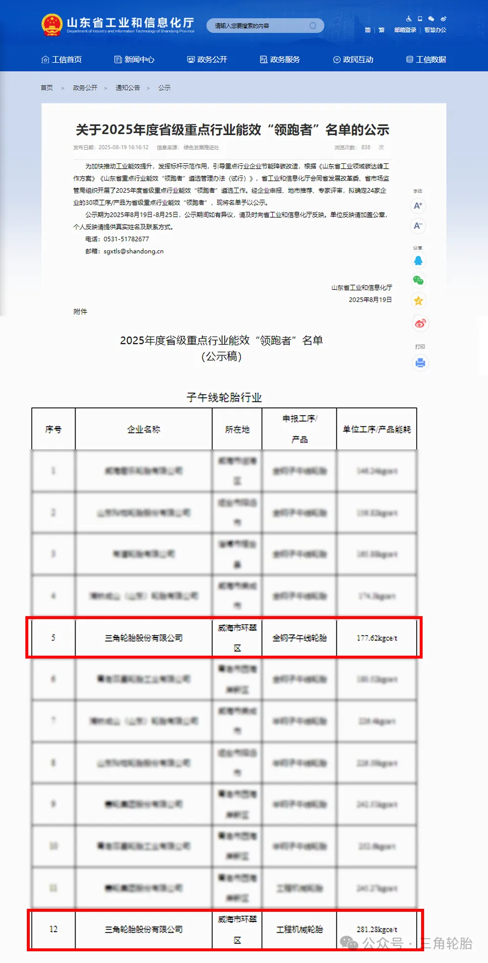 2025年8月19日,山东省工信厅联合省发改委、市场监管局公示2025年度省级能效“领跑者”遴选结果,共覆盖10个行业,24家企业的30项工序或产品,其中,三角轮胎全钢子午线轮胎和工程机械轮胎生产线双双入选,三角轮胎在绿色低碳发展方面取得扎实成效,是轮胎行业能效管理的成功典范。