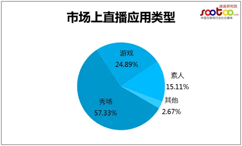 市场上直播应用中,秀场直播类应用占去了大半江山,占比达到57.33%。游戏直播类占比24.89%,后入场的素人直播类占比15.11%。尽管目前看来秀场直播和游戏直播的占比比较高,但素人直播这种全民参与的UGC内容生产模式顺应互联网发展的潮流,一出现就受到了广大用户的喜爱,而且全民参与的直播形式更容易从C端满足广大用户需求,现在众多直播平台以及开始涉足直播领域的企业都逐步开启了素人直播的功能。因此尽管当前占比不高,但却是未来最具发展潜力的直播模式。