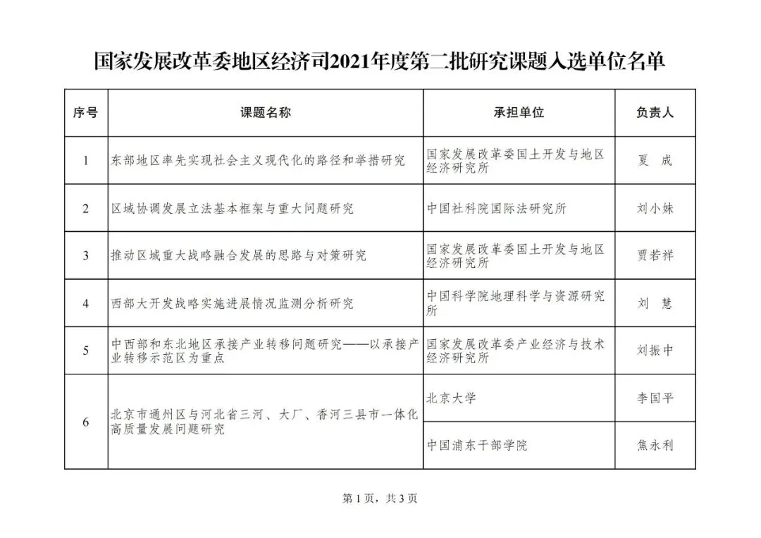 2021年4月27日,我司向社会发布了《国家发展改革委地区经济司2021年度第二批研究课题征集公告》。本次征集工作得到了全国多家研究机构、高等院校、社会团体、智库和企业的积极响应与大力支持。按照我司课题管理有关要求,经严格评审,确定了17个课题的承担单位及负责人。