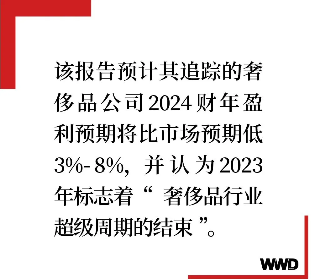 该报告预计其追踪的奢侈品公司 2024 财年盈利预期将比市场预期低 3%- 8%,并认为 2023 年标志着“奢侈品行业超级周期的结束”。