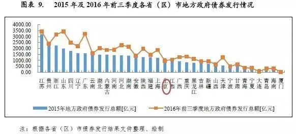 2015年12月,财政部下发了财预[2015]225号文件,提出对地方政府债务实行限额管理,省级人民政府要严格按照限额举借地方政府债务。2016年1月,财政部下发了财库[2016]22号文件,重申了地方政府债务限额管理原则,并对2016年地方政府债券发行工作做出了指导意见。2016年前三季度,全国34个省(区)市发行了地方政府债券,发行支数合计259支,发行金额合计5.08万亿元。