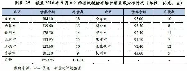 从城投债到期的地区分布来看,江西省到期城投债仍然主要集中于省本级和南昌市,其中省本级将在2018年迎来偿还高峰期,南昌市峰值在2019年。