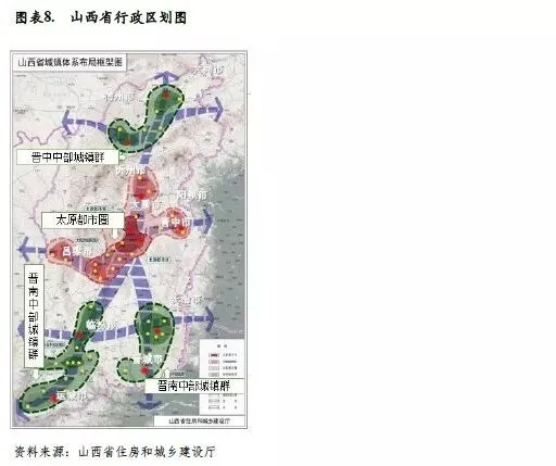 根据《山西省国民经济和社会发展第十三个五年规划纲要》,十三五期间,山西省将全力打造“一核一圈三群”城镇化格局(“一核”即太原市区;“一圈”即以太原都市区为核心,太原盆地城镇密集区为主体的都市圈;“三群”即以大同、朔州为核心的晋北中部城镇群;以长治、晋城为核心的晋东南中部城镇群;以临汾、运城为核心的晋南城镇群),以太原都市区为核心、区域中心城市为节点、大县城和中心镇为基础,加快推进市域城镇化,形成城镇化与工业化、城镇化与新农村建设良性互动的发展格局。