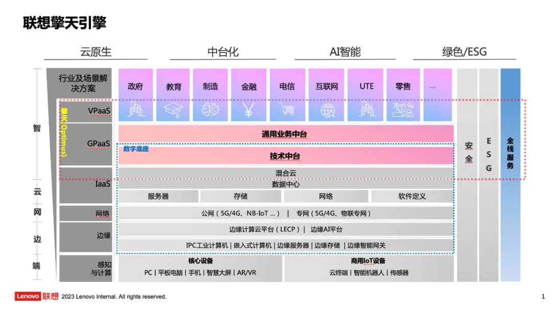在此期间,联想打造了包含智能供应链、智能营销、智能销售、智慧客服等能力的业务中台。经过六年努力,联想集团实现 “端-边-云-网-智”全栈能力布局,塑造顺应智能化转型需求的强健肌肉。
