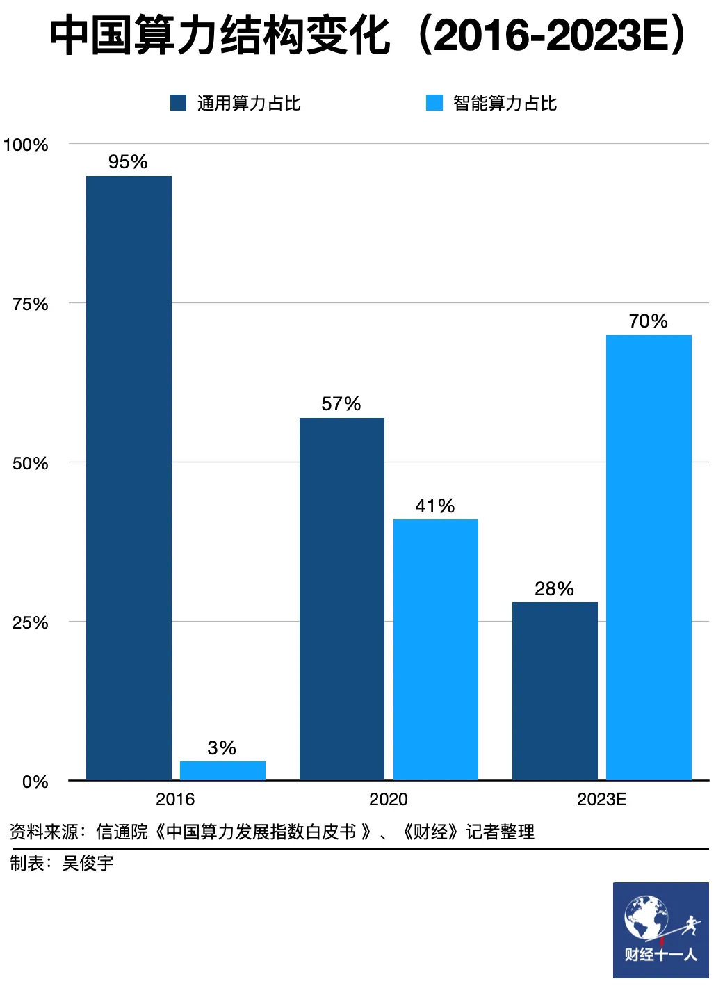 财务数据只是表象。如果要深究百度智能云逆势增长的原因,还要从行业的角度去剖析。我们综合研究调研的初步结论是,百度的差异化竞争策略开始奏效了。国内阿里、华为两大头部云厂商在云市场的路径都是从IaaS开始铺,在基础云资源足够丰厚的情况下,往上打通PaaS和SaaS,形成一个类似水电网+基于水电的多样化服务的大生态。电信、移动和联通三大运营商云,更是以IaaS为优势。百度智能云不太一样,IaaS布局是吞金兽业务,百度在IaaS上有所布局,但规模要比前述几家云巨头要小很多,百度从来都是强调以AI为引,带动所有业务板块,云板块也不例外。所以你可以理解为,百度是上(AI)下(IaaS)同时布局,上比下更具独特性,更有竞争优势。当然,在IaaS基础设施层,百度智能云也不是没有作为。在这一层上,这些年来,百度智能云在强化智能计算的投入。智能算力在中国算力结构中的比重已超过40%。百度在AI IaaS层有自研的昆仑芯片,AI PaaS层有自研的深度学习框架飞桨和文心大模型,形成了覆盖“芯片-框架-大模型-行业应用”的一整套智能化基础设施。在AI为特色的行业应用层,百度智能云的思路是摆脱卖资源的思维,主打拳头级应用产品。主动帮产业客户算清账,基于业务需求倒推解决方案。目前在政府、金融、制造、汽车、能源等重点行业形成了拳头产品。好处是,客户可以提效省钱。百度智能云的云产品可规模落地,保持收入/利润健康增长。简单理解,头部云厂商倾向于做平台,从下往上打。也就是从IaaS资源出发,往上销售数据库、数据中台等自研PaaS产品,再带入合作伙伴的SaaS应用。百度智能云更倾向从上往下打。也就是,先以AI应用入手,根据客户需求提供PaaS平台,再提供差异化的IaaS算力。云的本质是算力,哪些产业需要计算资源,云的增长点就在哪里。在云计算的算力池中,通用算力和智能算力是两种不同的算力。前者以CPU算力为主,更多处理通用计算需求。后者以AI芯片为主,其中GPU(图形处理器)最主流,也包含FPGA(现场可编程逻辑门阵列)、ASIC(特殊应用集成电路)等其他非GPU算力。AI芯片更多处理处理智能计算需求。原因是,GPU芯片处理AI大模型训练、AI推理、数据分析、图像分析等人工智能场景效率更高。自动驾驶、高端制造、智慧城市、生物医疗等场景,需要大规模的数据标注、模型训练,通用算力成本更高效果不佳,因此高度依赖智能算力。随着人工智能场景在各行业进一步落地,智能算力的需求在持续上升。中国信通院2021年一组数据显示,通用算力在中国算力池中的比重由2016年的95%下降至2020年的57%,智能算力的比重则由2016年的3%提升至2020年41%。预计到2023年智能算力的占比将提升至70%。