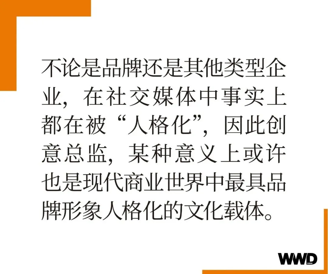 更值得注意的是,近两年来时尚奢侈品牌的神秘性不断被打破,为品牌赋予更加下沉的文化意义与潮流价值,不得不重视社交媒体生态的经营变革。而不论是品牌还是其他类型企业,在社交媒体中事实上都在被“人格化”,因此创意总监,某种意义上或许也是现代商业世界中最具品牌形象人格化的文化载体。