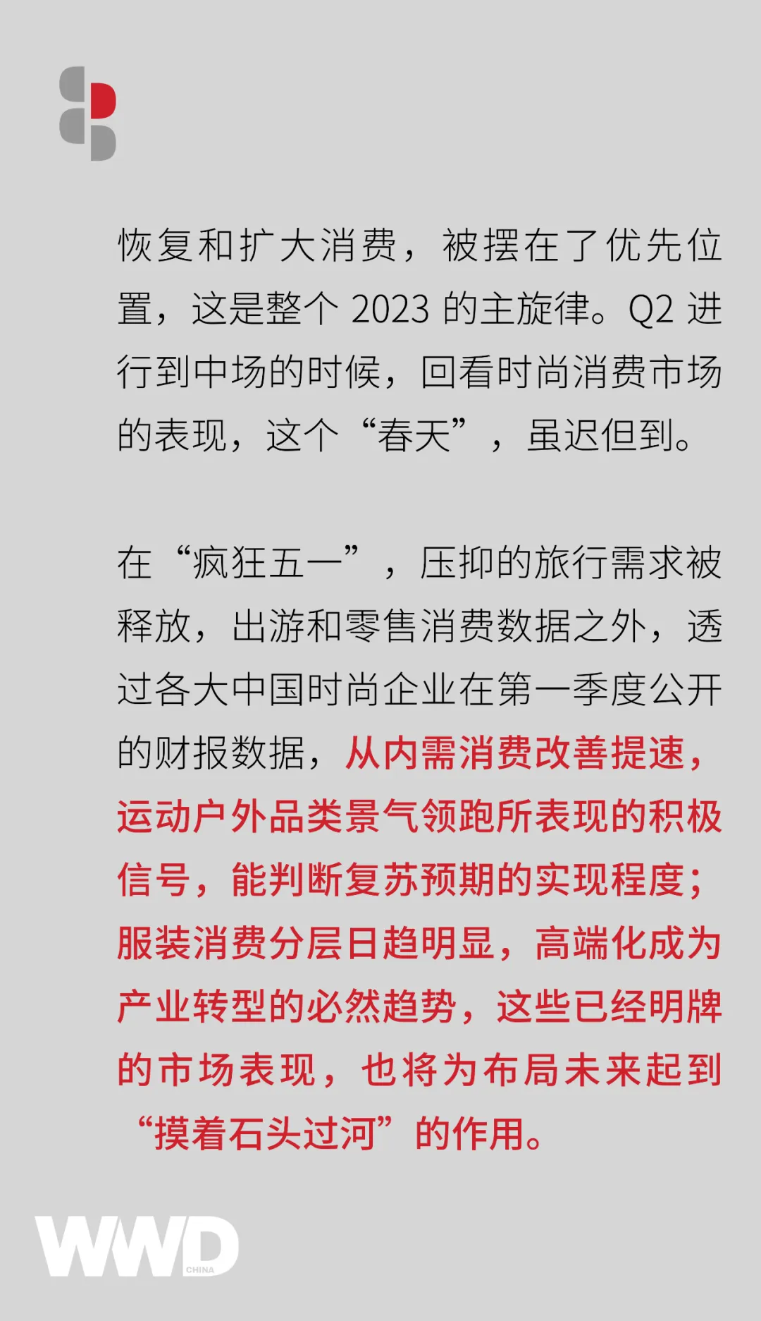 迟到的春天,虽迟但到。疫情放开后,鞋服行业已成为消费市场中最大的受益板块之一,曾经的热闹景象已宣告回归。但是,“谨慎乐观”依然是面对未来应持有的态度。WWD