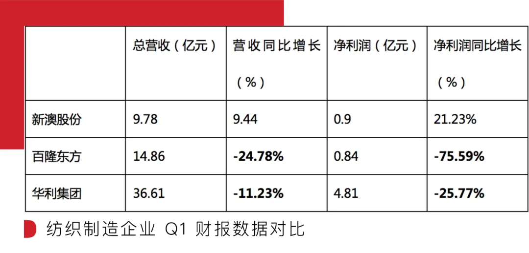 主要从事色纺纱的研发、生产和销售的百隆东方,服务客户中既有如 Zara、H&M、Gap 这些快时尚品牌或零售商,也有 Burberry、DKNY 这类国际时尚品牌,以及雅戈尔、李宁这类本土品牌,其 Q1 的财报数据,更直观地反应了品牌客户去库存所带来的影响。