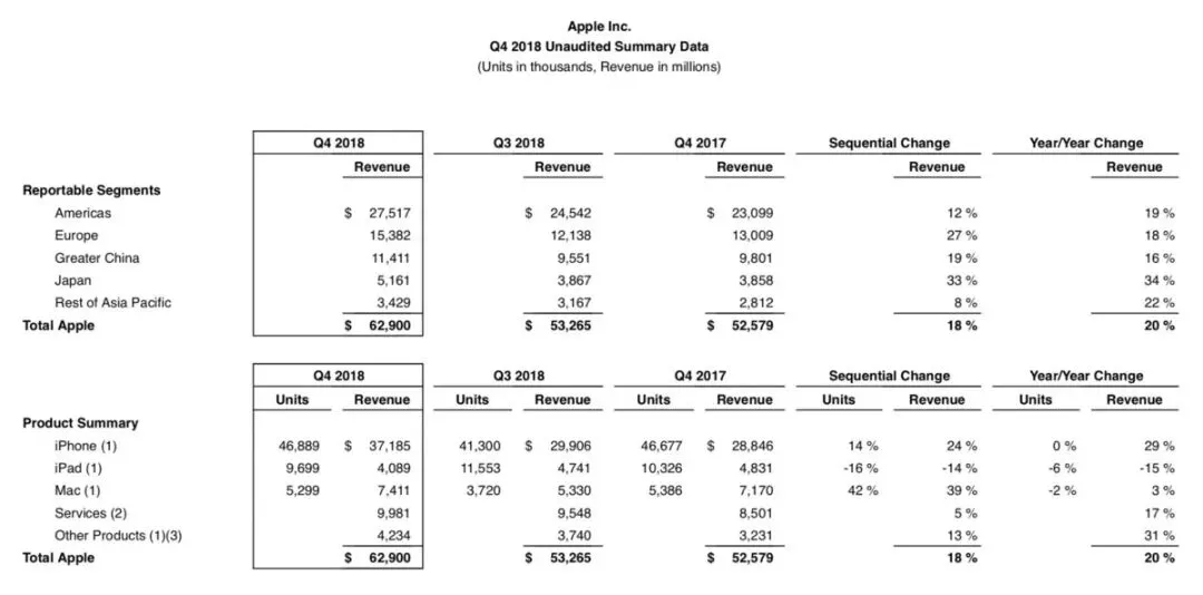 1月29日美股盘后,苹果发布了2019财年Q1(2018自然年Q4)临时报告(Current report)。