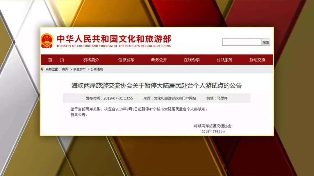 ▲7月31日,大陆出台“暂停赴台个人游”政策