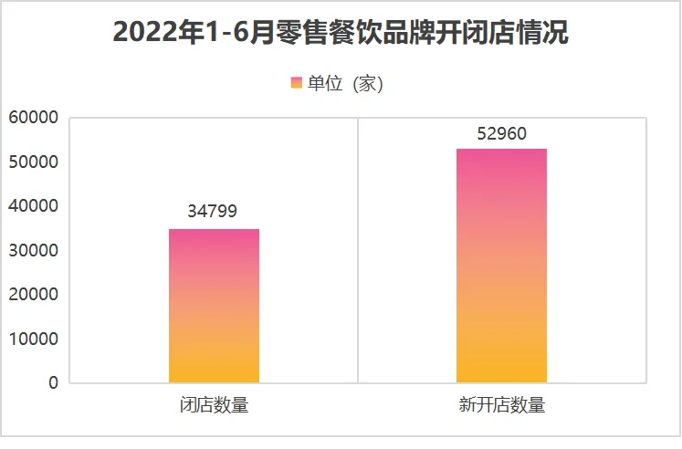 据智图GeoQ品牌数据不完全统计,2022年1-6月,零售、餐饮行业的连锁品牌关店数量超34799家,而新开门店则超过了52960家。整体来看零售餐饮连锁品牌规模仍在扩增。
