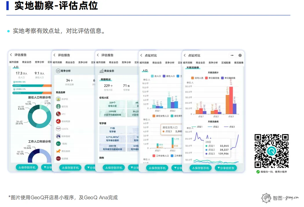 在确定出一批合适点址后,还可通过商圈分析、街区分析、客流分析等多维度对店址进行评估、对比,进一步提炼点位。经过层层筛选后,再到现场进行实地考察、摸排,即能大大降低返工率。