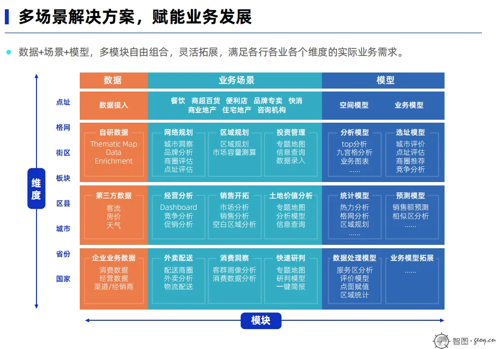 数据+场景+分析模型的科学创新解决方案,能够满足各行各业各个维度的业务需求,助力企业全生命周期高效协作运营。