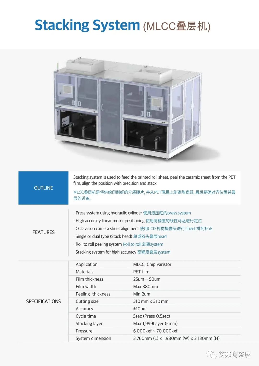 本公司成立于2013年11月, 位于深圳市宝安,是一家专业代理销售韩国知名品牌MLCC设备和材料的技术服务方案商。公司聘用韩方MLCC行业的技术专家作为技术顾问。公司主营产品包括MLCC单头/双头叠层机,流延机,凹版印刷机,全自动封端机,全自动超声波检测一体机等。